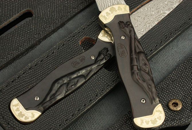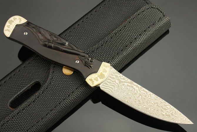 大马士革-火美人 全 长: 22.3cm 刃 长: 10.3cm 刃 宽: 2.4cm(最宽处) 硬 度: 58HRC 刃 厚: 0.25m 柄材:黑檀木 柄 长: 12cm 刃 材: 进口大马士革钢 表 面: 大马士革钢特有的花纹原色 其 他: 刃口锋利,真皮套,背景物品不作赠送