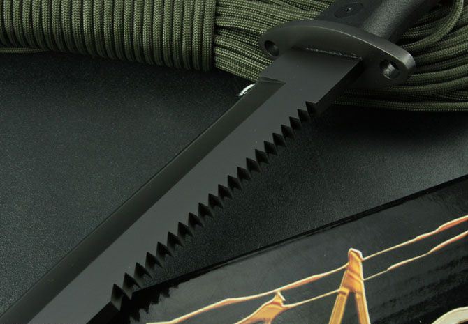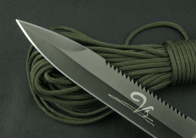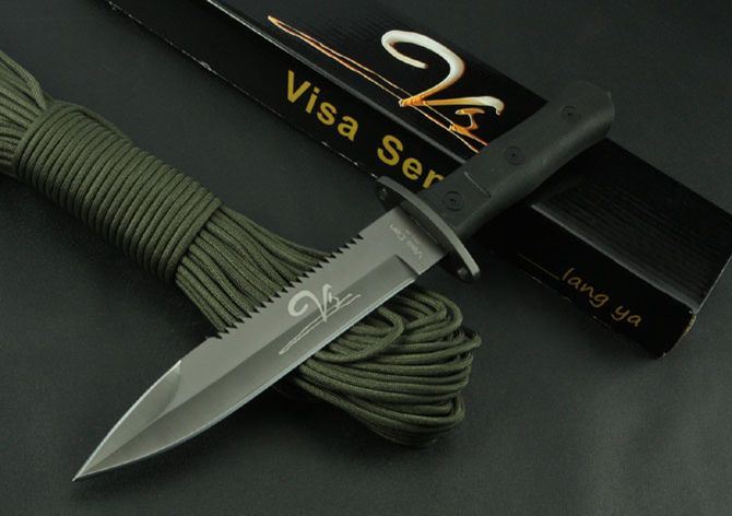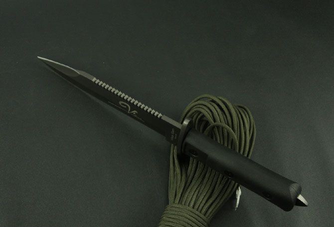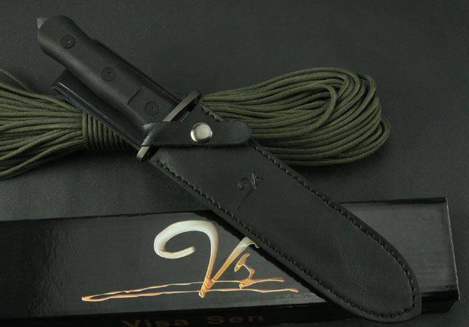 VS狼牙刺刀 全 长:325mm 刃 长:170mm 柄 长:115mm 刃 宽:31mm 刃 厚:4.3mm 刃 材:7Cr17Wov 重 量:460g(含刀套) 硬 度:56HRC 表 面:氧化黑 柄 材:ABS(塑胶) 锁 型:定锁 其 他:配真皮套和彩盒