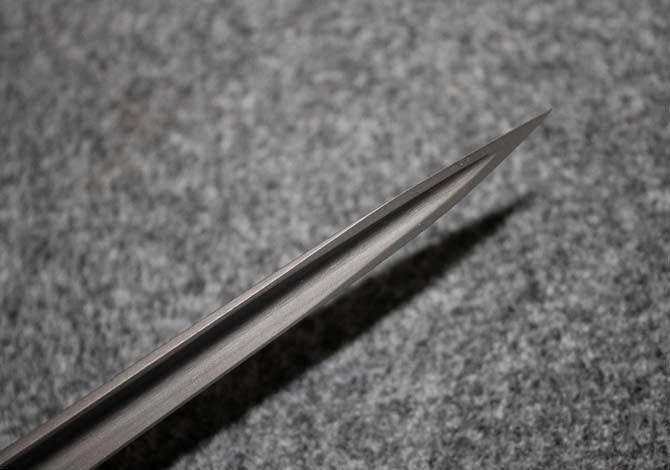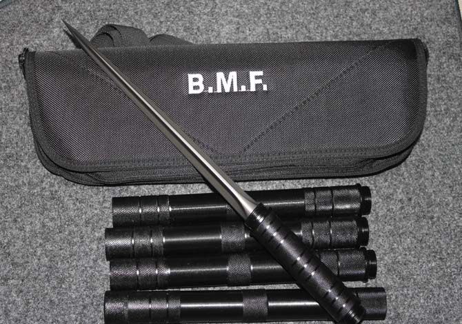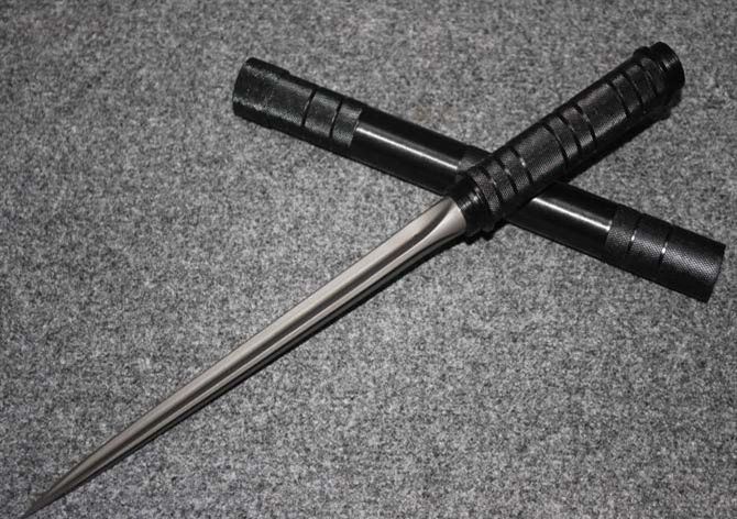 特长版五节三棱刺 完全可以反接上最长145cm 刃 长: 26.0CM 刃 材: 三棱刃不锈钢 柄 长: 13CM 重 量: 1545克 刀 鞘: 尼龙袋 三棱军刀,是三棱军刀的狂想款式,充满着灵动和邪恶的样式