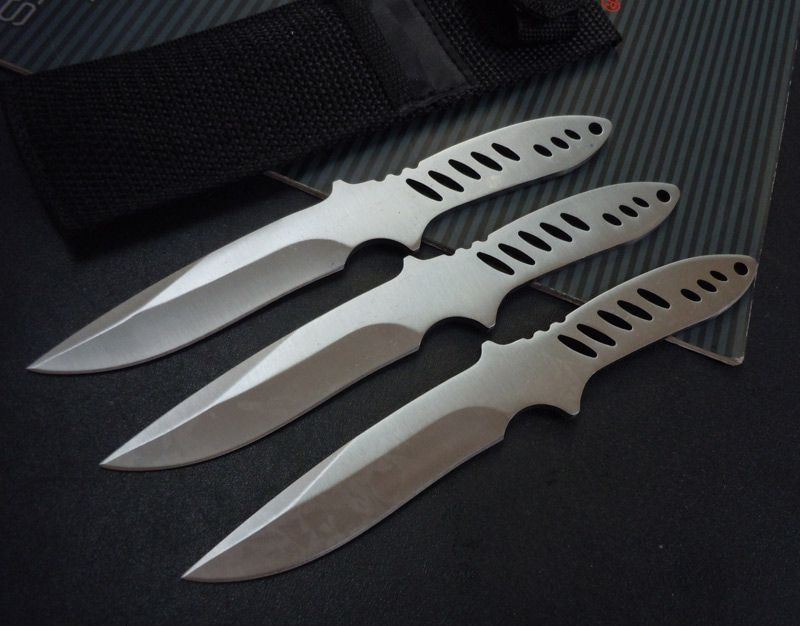 突击兵飞刀(三支) 全长:16.5CM 刃长:7.3CM 刃厚:0.25CM 材料:3铬13不锈钢 重量:50克 美国飞镖协会(American Darts Association)设计产品!钢柄单刃,手法简单,容易上手