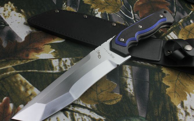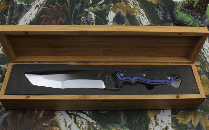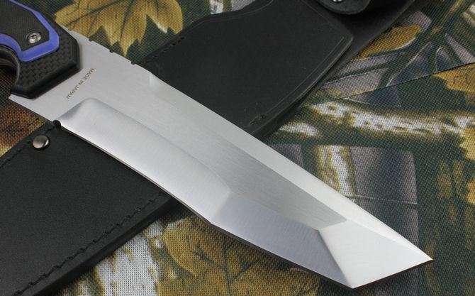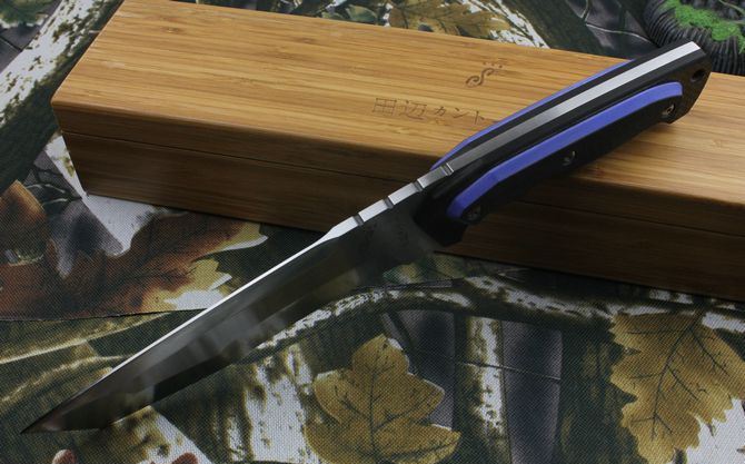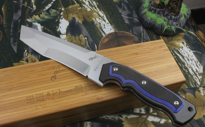 田边一寿(暴汉) 刃材:9铬钢 手柄:全数控 碳纤+双色G10 表面处理:拉丝 + 刃口镜光 刀具全长 31.8CM 刃长:17.4CM 刃厚:0.62CM 硬度:60±1HRC 热处理:真空+深冷处理 重量:单刀(543克) 连刀鞘:642克 配件:牛皮套、高级礼品盒