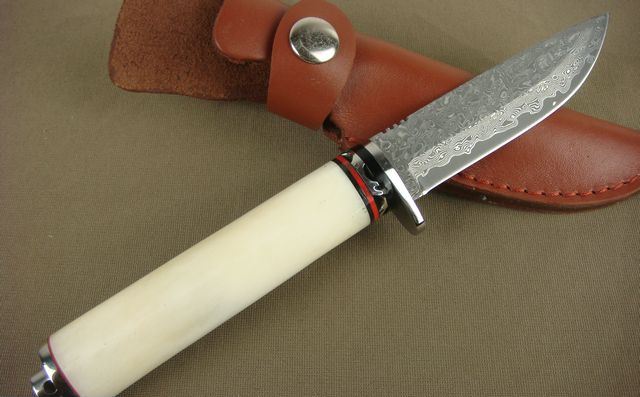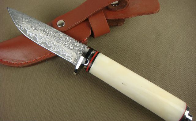 羊骨玻璃锤大马士革珍藏直刀 全长cm:21 刃宽cm(最宽处):2.1 柄材:羊骨 刃厚cm:0.2 刃材:大马士革 净重g:120 总重g:140 刃长cm:9 硬度:HRC57 柄长cm:11.5 表面: 大马士革钢特有的花纹原色 包装:配礼品盒