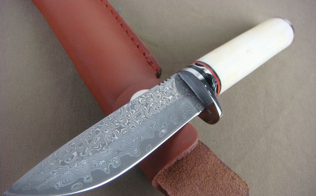 全长cm:21 刃宽cm(最宽处):2.1 柄材:羊骨 刃厚cm:0.2 刃材:大马士革 净重g:120 总重g:140 刃长cm:9 硬度:HRC57 柄长cm:11.5 表面: 大马士革钢特有的花纹原色 包装:配礼品盒