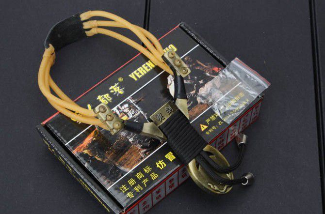亮剑弹弓 全 长: 12.8cm 口 宽 6.5cm 柄 材: 绳子 柄 长: 7.5cm 重 量:178克 拉 力:5公斤