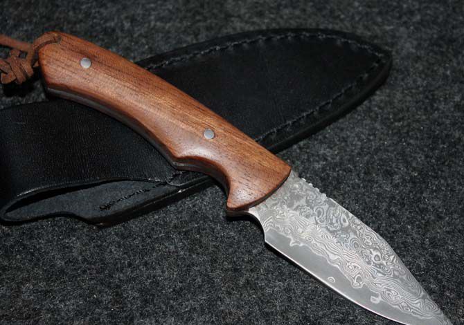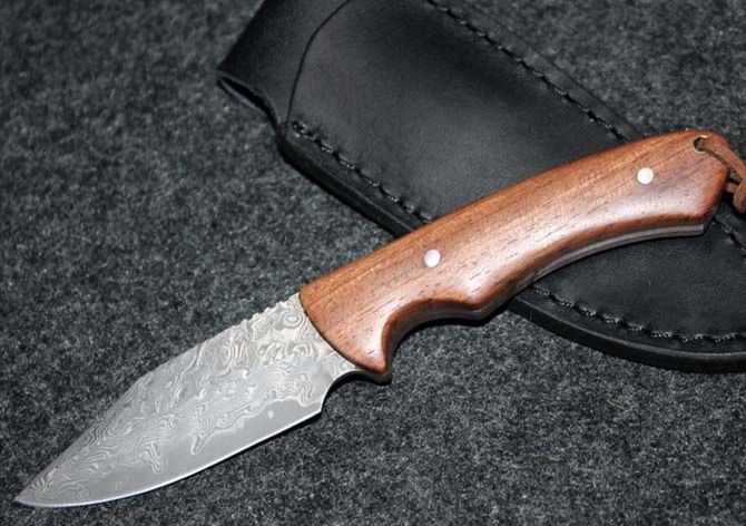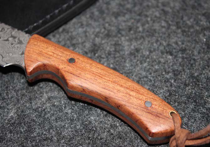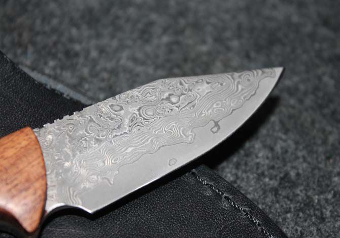 小小器大马士革直刀 全 长:16cm 刃 长:7cm 柄 长:9cm 刃 宽:2.4cm 刃 厚:2mm 刃 材:大马士革 重 量:80g(含包装) 硬 度:58HRC 表 面:锻打大马士革原色 柄 材:原木柄 锁 型:定锁 其 他:牛皮套