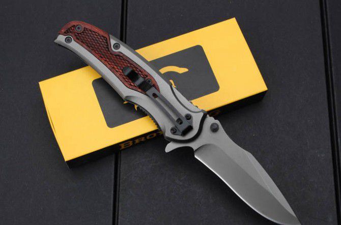 巴克X46快开折刀 全 长:223mm 刃 长:95mm 柄 长:123mm 刃 宽:28mm 刃 厚:3.6mm 刃 材:5Cr15Mov 重 量:257g(含包装) 硬 度:57HRC 表 面:镀钛 柄 材:钢柄+红木 锁 型:快开 其 他:配彩盒