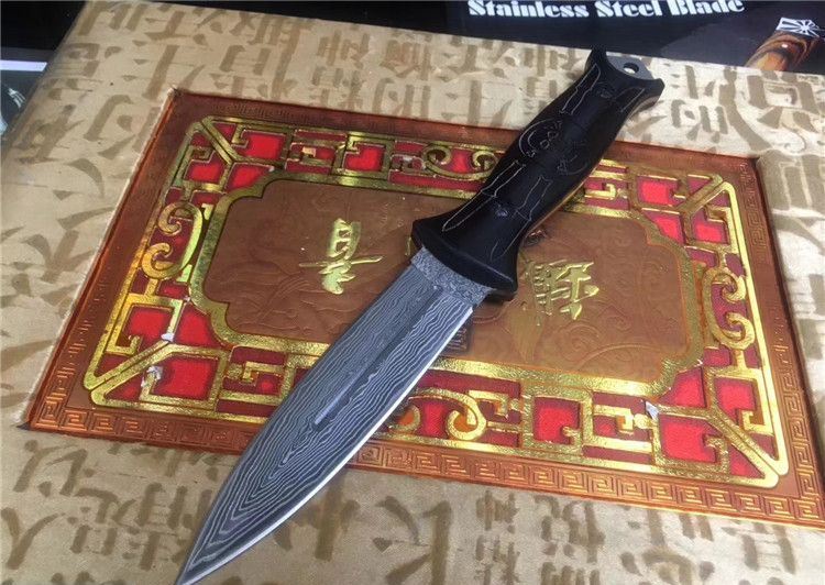 全 长: 24.6cm 刃 长: 11.5cm 刃 宽: 2.6cm(最宽处) 柄 长: 12.6cm 刃 材: 大马士革 硬 度: 59 HRC 表 面: 电脑浮雕精美图案 刃 厚: 0.3cm 柄 材: 高档黑檀木 净 重: 160g 总 重: 220g 包 装:彩合 品 质: 品质卓越