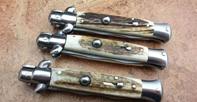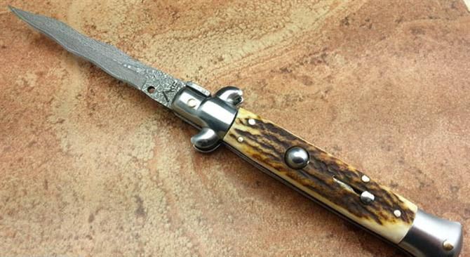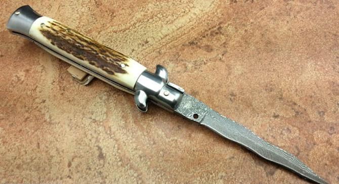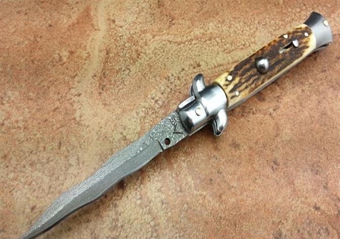 9寸意大利黑手党鹿角跳刀(大马士革蛇刃)