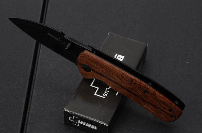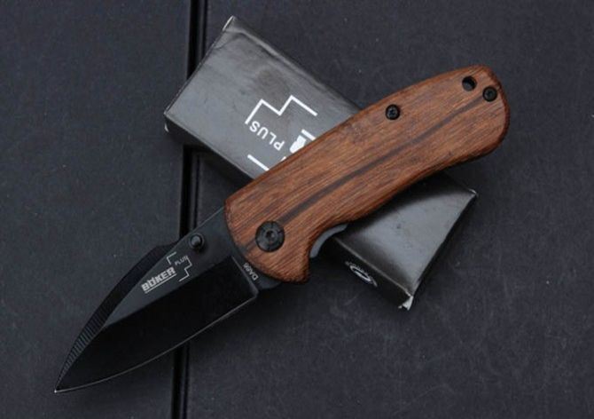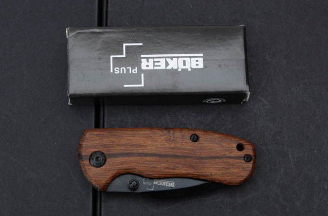 博克DA66小折刀 全 长:150mm 刃 长:62mm 柄 长:85mm 刃 宽:28mm 刃 厚:2.9mm 刃 材:440 重 量:100(含包装) 硬 度:57HRC 表 面:黑钛 柄 材:钢片+鸡翅木 锁 型:线锁 其 他:配厂盒