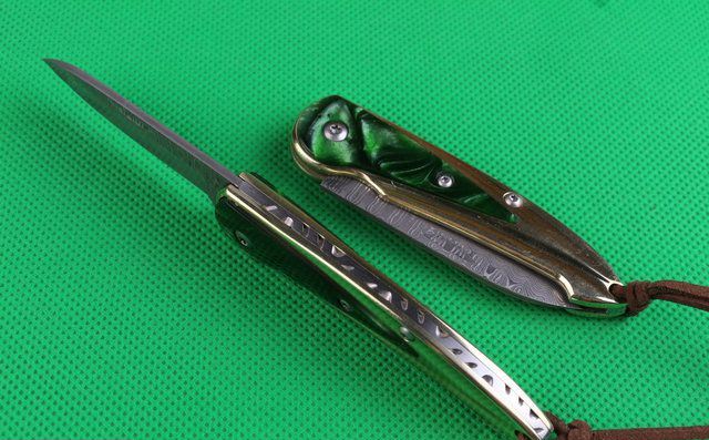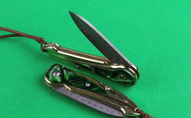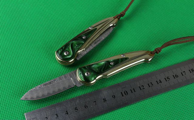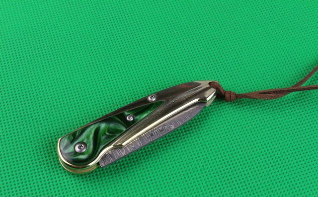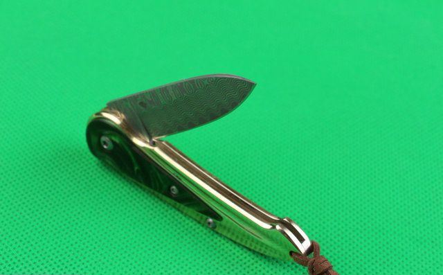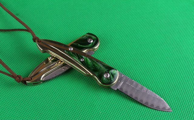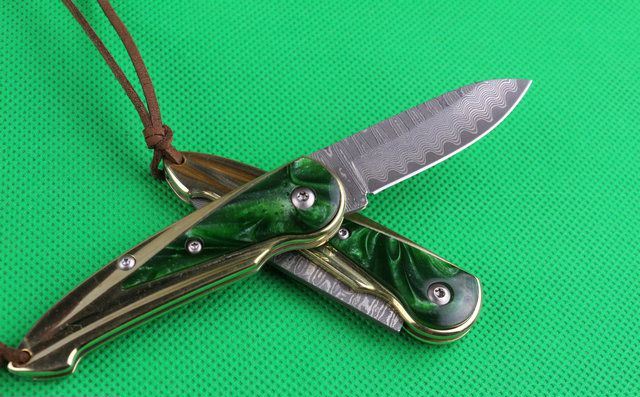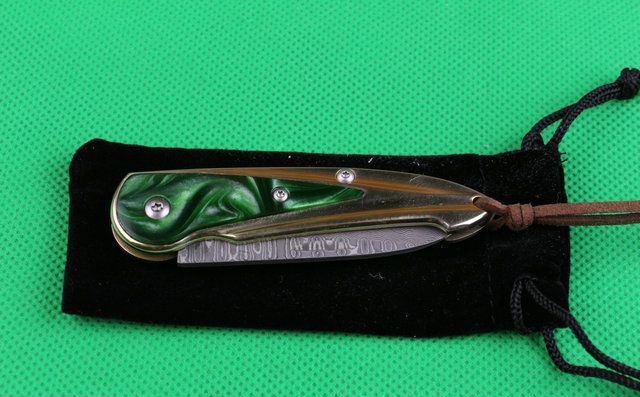 金玉满堂(大马士革钢) 全 长:15.1cm 刃 长:5.6cm 柄 长:9cm 刃 厚:2.2mm 刃 材:大马士革钢 硬 度:58HRC 刀 柄:七彩树脂+纯白铜 表 面:大马士革花纹 锁定方式:无锁 重 量:100.0克(含包装) 包 装:黄色盒+黑绒袋