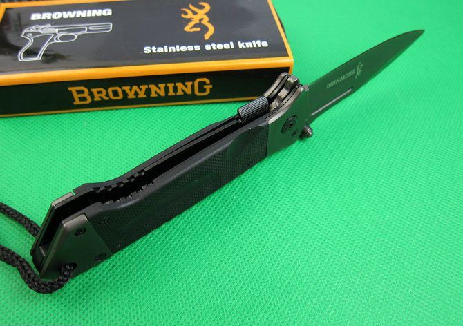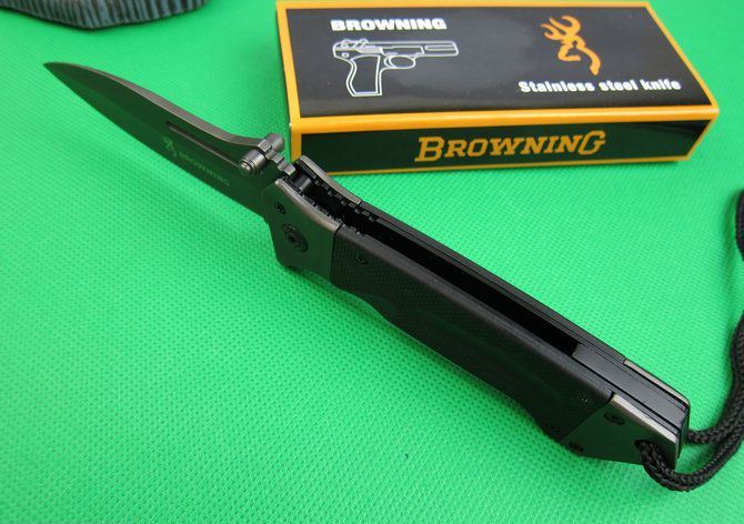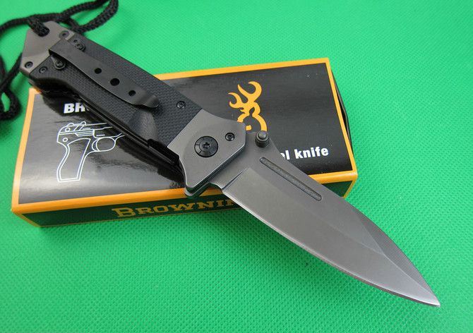 勃朗宁DA35-2快开折刀 全 长:220mm 刃 长:92mm 柄 长:127mm 刃 宽:27mm 刃 厚:3.5mm 刃 材:8Cr14Mov 重 量:230g(含包装) 硬 度:58HRC 表 面:镀钛 柄 材:黑G10柄 锁 型:快开线锁