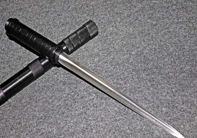 加长版三棱刺(砂光版) 完全可以反接上最长117.5cm 刃 长: 26.0CM 刃 材: 三棱刃不锈钢 柄 长: 13CM 重 量: 1345克 刀 鞘: 尼龙袋