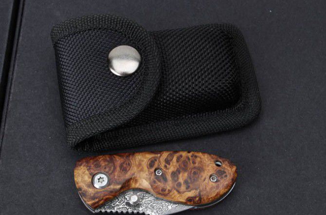 红影木大马士革折刀 全 长:115mm 刃 长:45mm 柄 长:72mm 刃 宽:26mm 刃 厚:3mm 刃 材:大马士革 重 量:86g(含包装) 硬 度:58HRC 表 面:大马士革原纹 柄 材:红影木 锁 型:线锁 其 他:配尼龙套