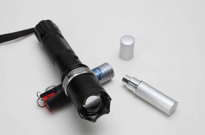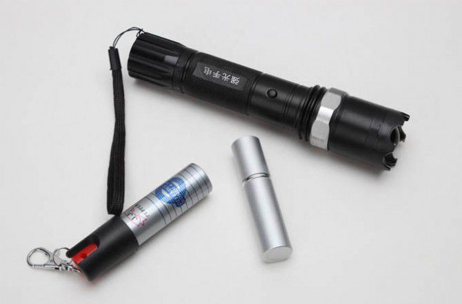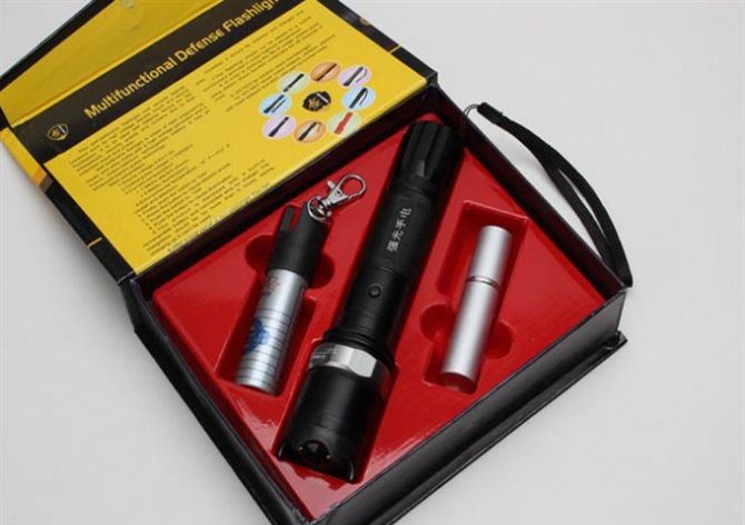 2018警用套装电棍 全长:18.2CM 管宽:3.5CM 重量:205克 净重 输出电压:40万伏 电源方式:循环充电式 配 两支催泪喷雾