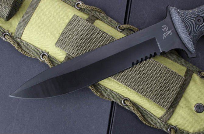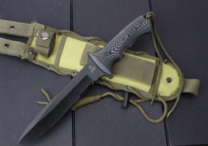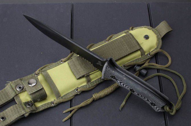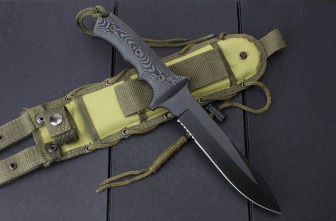 全 长:32cm 刃 长:18.5cm 刃 厚:6mm 刃 材:440C 硬 度:58HRC 表 面:黑钛 柄 材:米卡塔 刀 鞘:尼龙