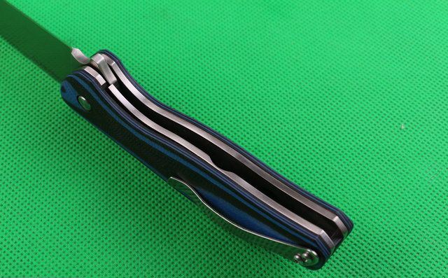 全 长:22.0cm 刃 长:9.7cm 柄 长:12.8cm 刃 宽:3.2cm(最宽处) 刃 厚:4.7mm 刃 材:5CR15MOV 硬 度:57-59HRC 刀 柄:双色米卡塔。 表 面:平磨,直纹沙光 锁定方式:一体线锁 重 量:350克(含包装) 备 注:带背夹,刀身内置轴承。