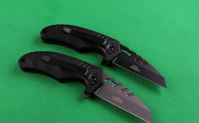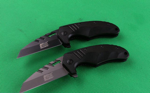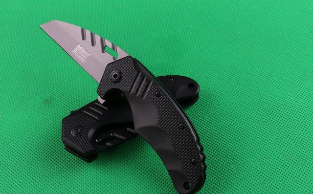Mtech.F75快开小刀(全刃) 全 长:168mm 刃 长:70mm 柄 长:102mm 刃 宽:26mm 刃 厚:2.8mm 刃 材:440 硬 度:57HRC 表 面:镀灰钛与黑钛两色任选. 柄 材:全钢+扎纹铝片 锁 型:线锁 其 他:配厂盒