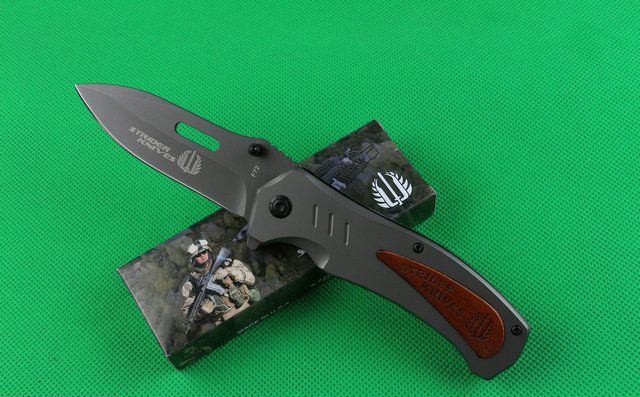 米克F72快开折刀 全 长:210mm 刃 长:90mm 柄 长:118mm 刃 宽:28mm 刃 厚:2.8mm 刃 材:440 重 量:(含包装) 硬 度:57HRC 表 面:镀灰钛 柄 材:全钢+红花梨 锁 型:线锁 其 他:配厂盒