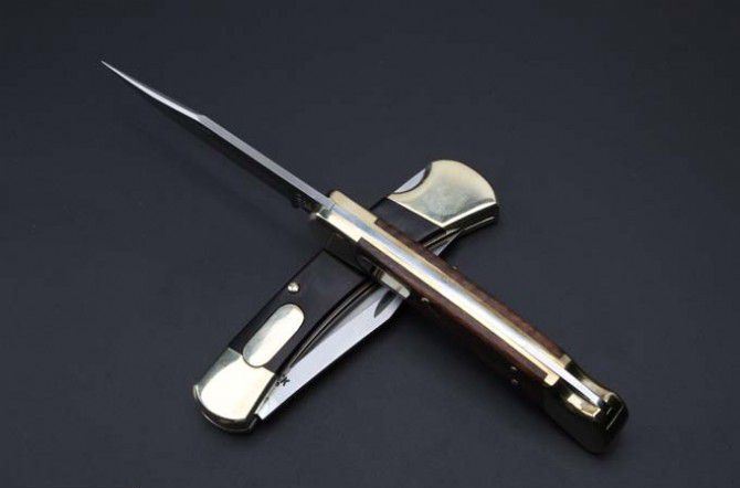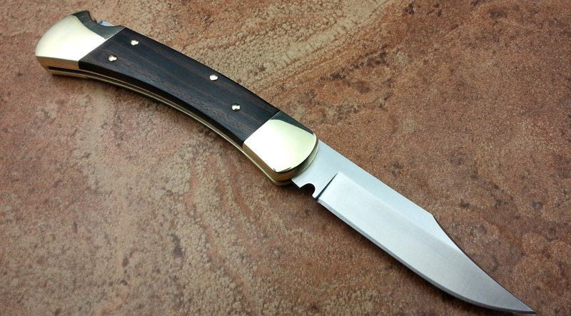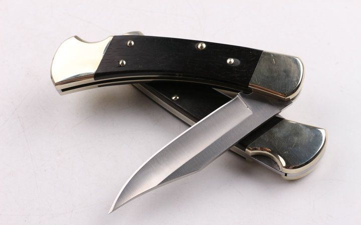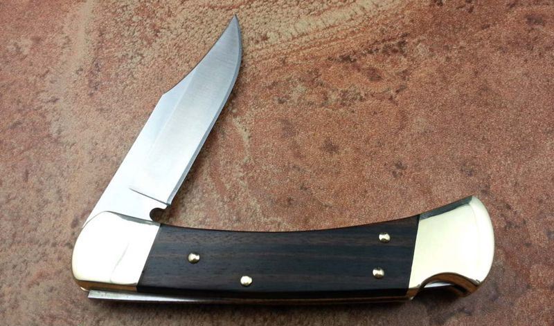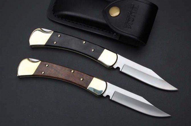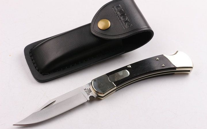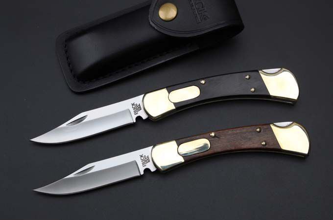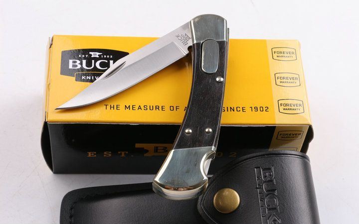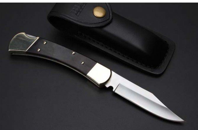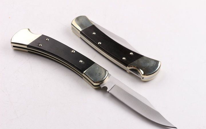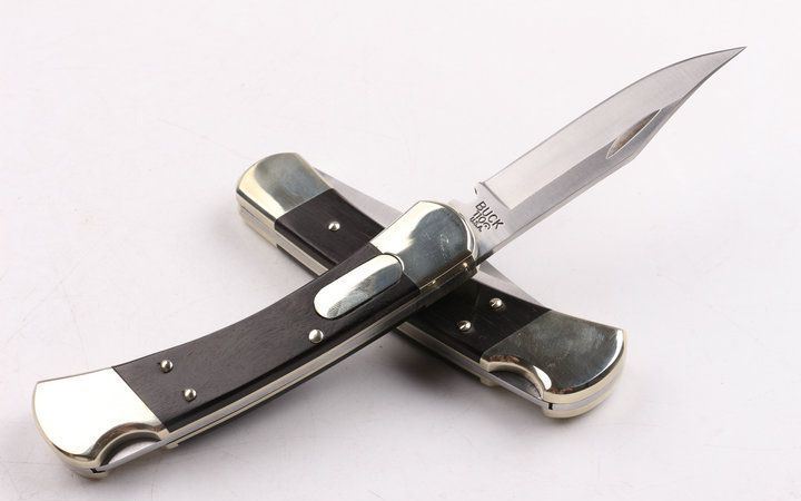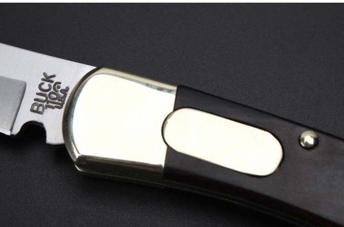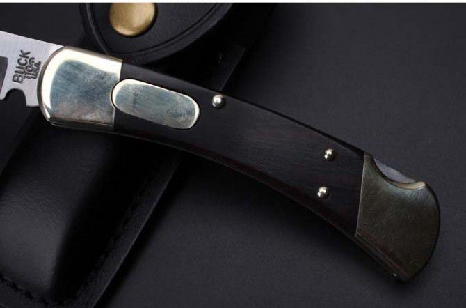 Buck 110 auto Conversion经典巴克110自动款 全长:21.8 刃长:9.5 刃宽:2.1 刃厚:0.29 柄长: 12.5 刃材:440 硬度:57HRC 柄材:黄铜头+钢片+黑檀木 锁型:背锁 总重量:300(含包装物) 颜色:黑檀木柄、黄檀木柄 高档彩盒包装和优质牛皮套