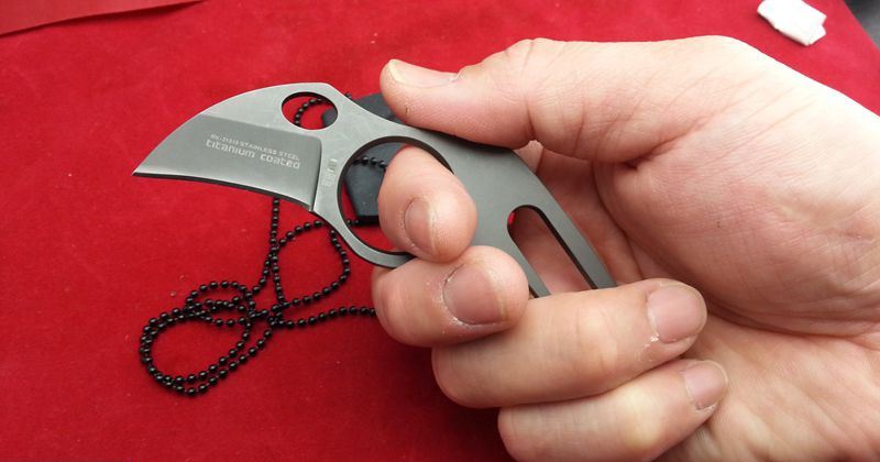 全长:15cm 刃长:4cm 重量:60g 刀鞘:Kydex Rui 31849是、小巧便携的颈刀,小弯托型柄镂刻有安全指孔,食指穿挂上面可以完成使用的多种功能,全不锈钢一体龙骨