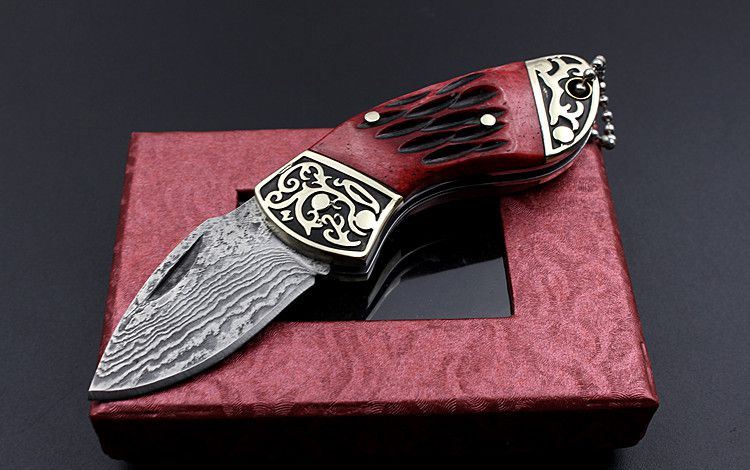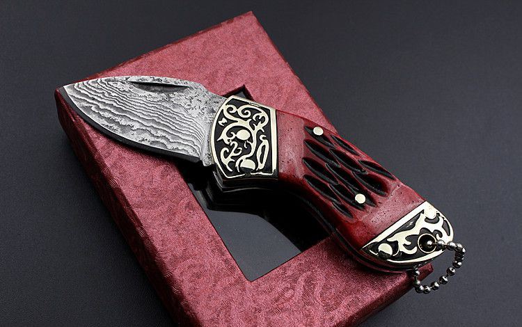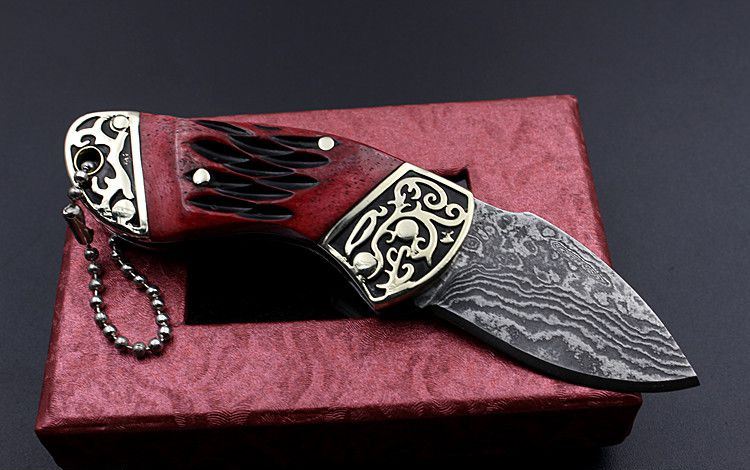全 长: 11cm 刃 长: 4.3cm 刃 宽: 2.3cm(最宽处) 闭 合: 7cm 硬 度: 59HRC 刃 厚: 0.27cm 重 量: 109克(含包装) 表 面: 纯手工制造 刃 材: 大马士革 柄 材: 黄铜+骨片 锁 闭: 传统式制尾锁 其 他: 刃口锋利 大马士革钢花纹和把手木纹及颜色各异,以实物为准