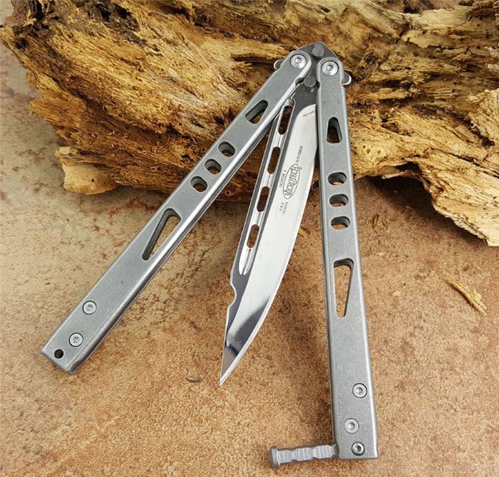 全长:25.3 刃长:11.4 刃厚:0.38 刃材:440镜面 柄材:石洗钢柄 柄长:13.8 重量:140克 Microtech(微技术)经典款蝴蝶甩刀-光束粒子,石洗柄,镜面矛尖锋刃