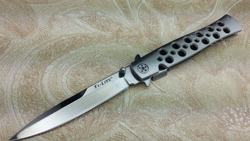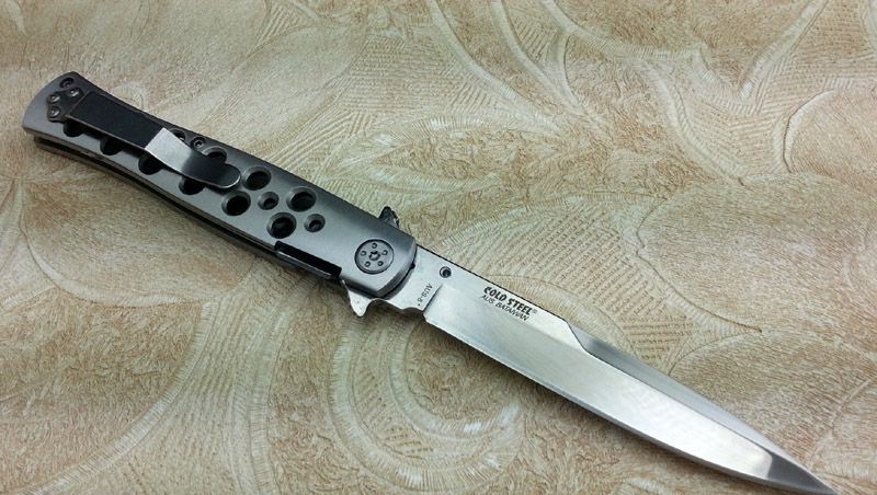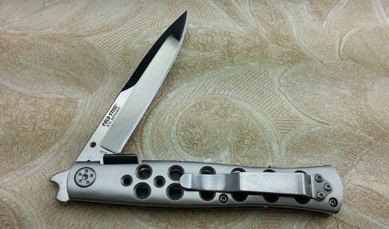 冷钢26S钢色 (精美礼盒)镜面款 全长: 22 刃长:10 刀柄:123 刀厚:0.3 重量: 150克 刃材: AUS-8 硬度: 57 刀锁:衬锁 表面:刃镜面 冷钢26S新款,英俊的梭子型刀身!,细长穿刺型刀刃,拥有强大的穿刺和切削能力,鲨鱼背鳍式的突起及刀刃上的拨钮结构,可以单手快速的开关刀。刀刃衔铁上设有护手的赌徒刀设计,内衬卡锁,向所有人提供了易于操作的优良性能