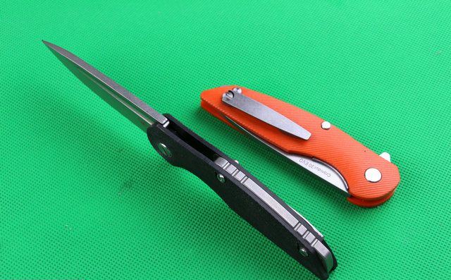 全 长:22.1cm 刃 长:9.2cm 柄 长:13cm 刃 宽:2.8cm(最宽处) 刃 厚:4.5mm 刃 材:5CR15MOV 硬 度57-59HRC 刀 柄:橙红G10,黑色G10两色。 表 面:石洗 锁定方式:一体线锁 重 量:310克(含包装) 备 注:带背夹,刀身内置轴承,非常锋利。