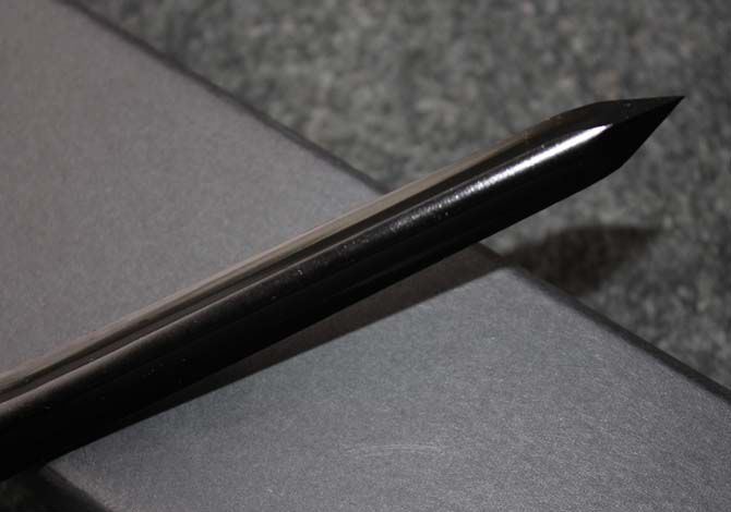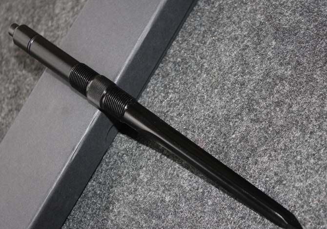 长 度:27.5CM 刃 长:13CM 刀 径:2CM 净 量: 400克 毛 重:500克 硬 度: 56HRC 材 质:不锈钢 柄 材:全钢 处 理:电泳黑化 其 他:精装礼品盒子 独特的设计市面上只有此款,而且三棱军刀的狂想款式,充满着灵动和邪恶的样值得刀友们收藏数量有限!!黑三棱的刀条为全钢一体。不仅结实耐用,更起到画龙点睛的效果。手柄尾部设计成锥型攻击头,可以起到意外的防卫效果!