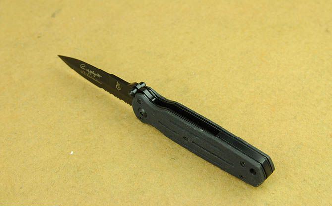 戈博4481全黑半齿战术折刀