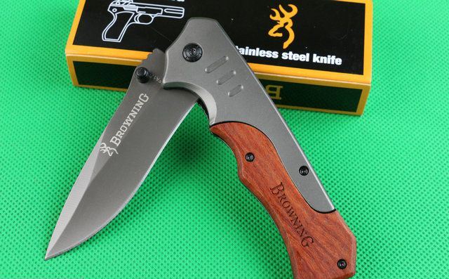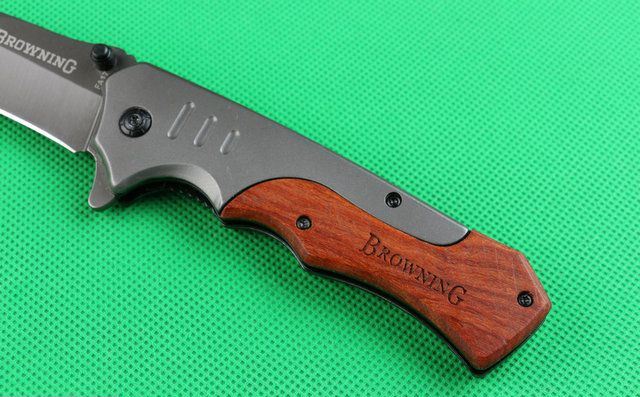 勃朗宁FA17快开折刀 全 长:220mm 刃 长:95mm 柄 长:128mm 刃 宽:28mm 刃 厚:2.8mm 刃 材;440 重 量:230(含包装) 硬 度:57HRC 表 面:灰钛 柄 材:全钢+红酸枝木 锁 型:线锁 其 他:配厂盒