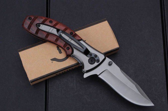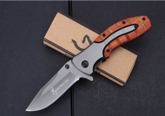 勃朗宁x47快开折刀 全 长:202mm 刃 长:88mm 柄 长:117mm 刃 宽:28mm 刃 厚:2.9mm 刃 材:5Cr15Mov 重 量:182g(含包装) 硬 度:57HRC 表 面:镀钛 柄 材:钢柄+红木 锁 型:快开 其 他:配彩盒