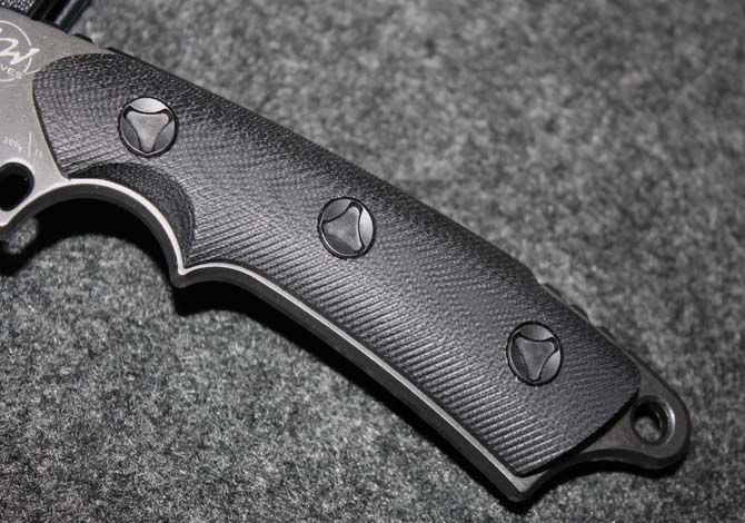 全 长:22CM 材 料:特级D2钢一体刀(比市面上普通的D2钢更耐锈,韧性更好) 刀 全长与刃长的比例为1比0.5158 刃 长:9.8CM 厚 度:0.43CM 刀 身最宽处3.1CM 硬 度高达60HRC(真空油淬热处理) 刀表面:(石洗色刀身为黑色,是经过磨洗机磨洗处理) 手 柄:进口优质G10材料 刀 鞘:进口Kydex刀鞘