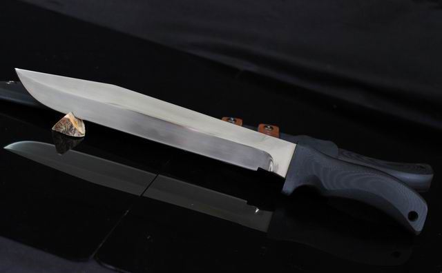 产品简介:此款疯狗通背假刃版,刀型线条设计优美,重量适中,韧性和硬度结合完美,非常适合户外当随身副刀使用 。