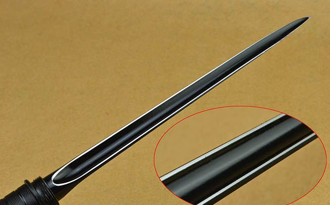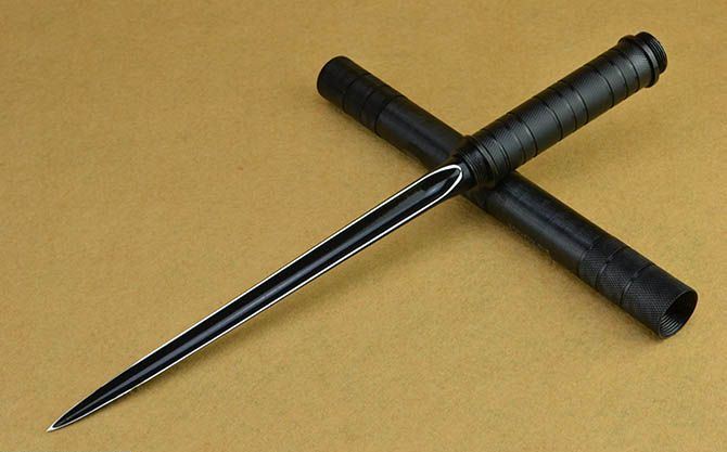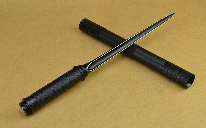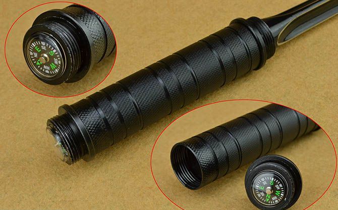 联合刀具水管三棱刺(带指南针) 完全正合长度:39.5CM 完全反驳长度:64.5CM 刃长:25CM 管径: 2.8CM 重量: 645g 硬度: 56HRC 刀材质:不锈钢 表面处理:电泳黑化 管材: 钢管 柄材: 钢管 其他:带指南针、尼龙刀套、纸盒。
