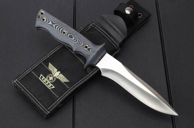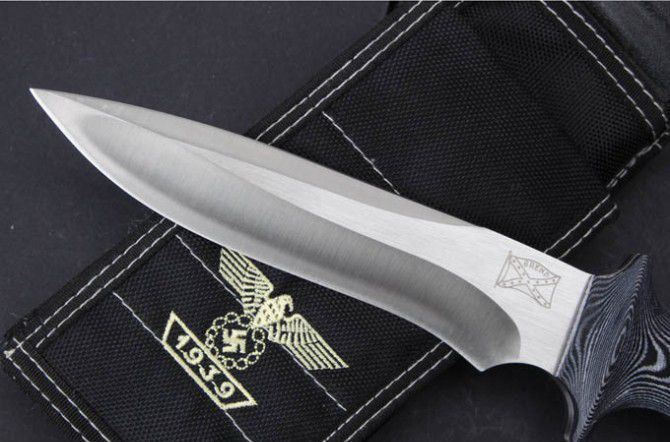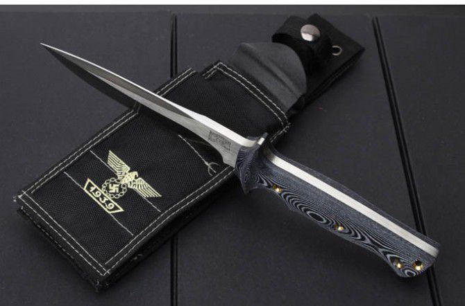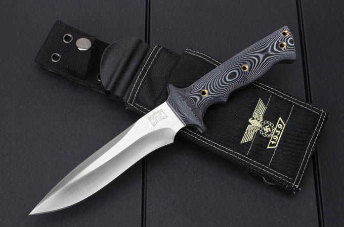 全长:30cm 刃长:16cm 柄长:14cm 刃厚:6mm 刃宽: 3.5cm 刃材: 8Cr13 柄材: 米克塔 硬度: 56HRC 净重:395克 毛重:820克 表面处理:手工砂光 其他:配硬纸盒