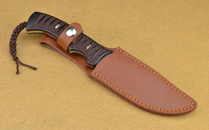 全 长:15cm 刃 长:12cm 刃 宽:3.3cm(最宽处) 刃 厚:5mm 柄 长:13cm 表 面:镜光+丝光 刃 材:7CR17 硬 度:58HRC 柄 材:黑檀穿孔绑绳 刀身贯穿刀柄一体龙骨结构 重 量:335克(含包装) 包 装:皮套