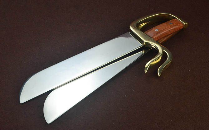 全长:40.5cm 柄长:10cm 刃长:28cm 刃宽:5.5cm左右(最宽处) 刃厚:0.3cm 两把总重:2000g(含皮套)