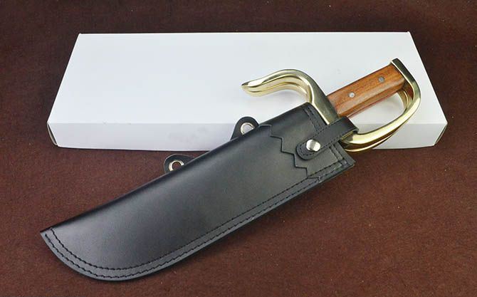 【刃材】 全钢超镜光 【工艺】抛超镜光 【硬度】 56左右 (HRC) 【鞘材】 皮套 【护手】 黄铜 【手柄】 红酸枝 【其他】 手工产品,稍有差别,请以实物为准