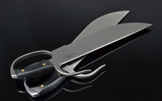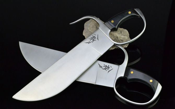 全长:42cm 柄长:12cm 刃长:30cm 刃宽:7.3cm左右(最宽处) 刃厚:0.5cm 两把总重:1600kg(含尼龙套) 刃材:全钢 工艺:全手工打造 精细抛砂光 硬度:57左右 (HRC) 鞘材:尼龙套 护手:精铸钢 手柄:黒木 其他:手工产品,稍有差别,请以实物为准。