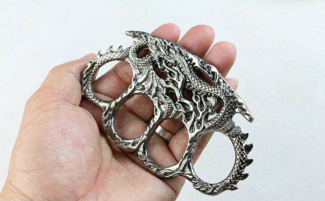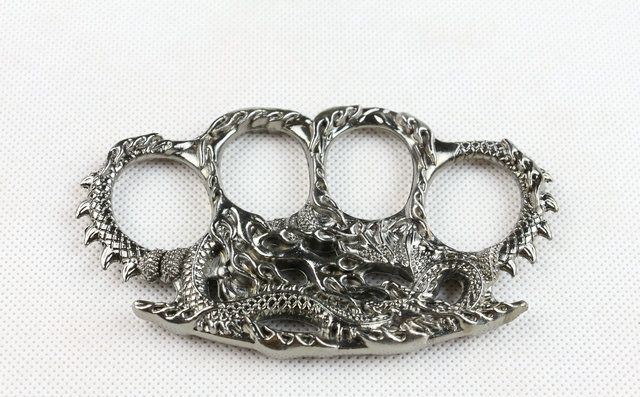 龙腾四指拳套 规格:长11.8*高6.8*厚1CM 材质:压纹图案铸铁金属 重量:150克 戴上后可提升拳部的攻击力,而其用于格斗时套在手上,可以使拳头的威力暴增,只要用于自防卫,打破汽车玻璃自救等。