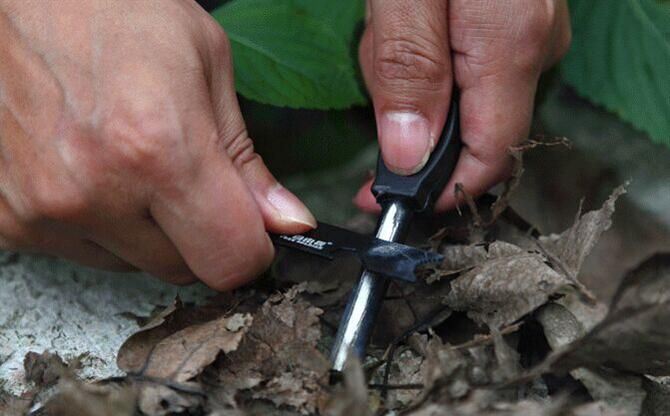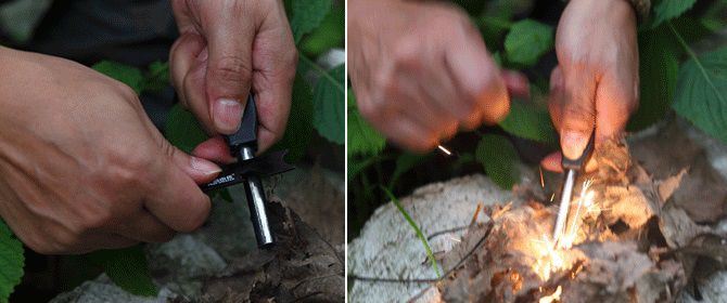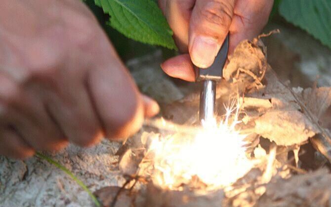 使用方法:用金属刀片慢慢地刮火石,产生一些碎屑于一小堆干草、叶子或是纸中 ,迅速划镁条产生火星引燃镁屑。当火焰产生后,加入细薄的木棒,即可形成火焰。