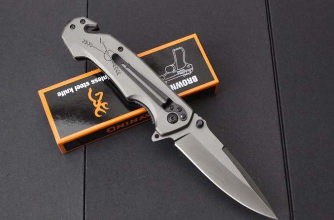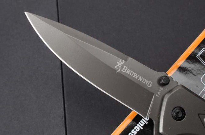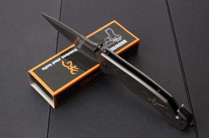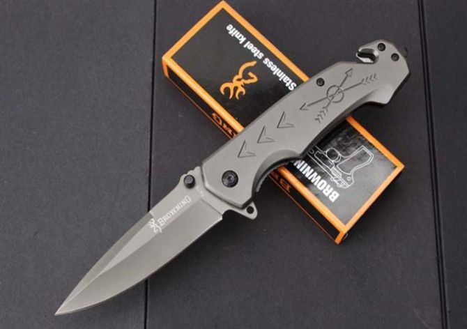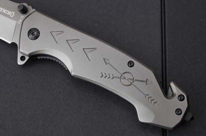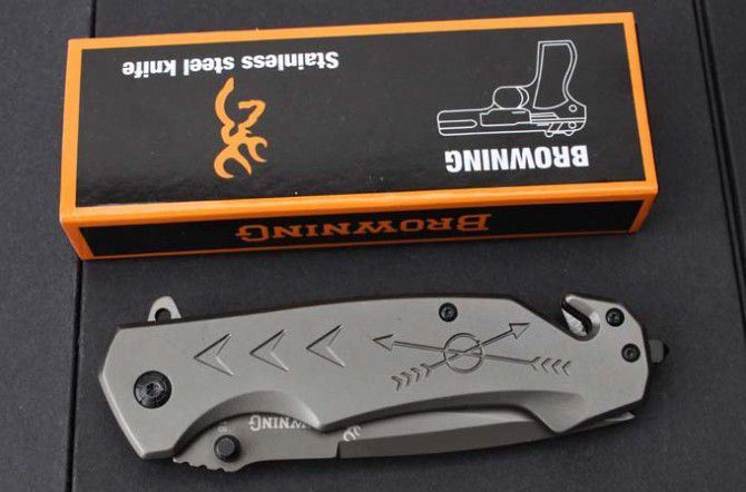 勃朗宁FA18快开折刀 全 长:228mm 刃 长:98mm 柄 长:129mm 刃 宽:29mm 刃 厚:2.8mm 刃 材:5Cr15Mov 重 量:270g(含包装) 硬 度:57HRC 表 面:镀钛 柄 材:钢柄 锁 型:快开 其 他:配彩盒
