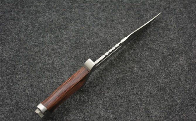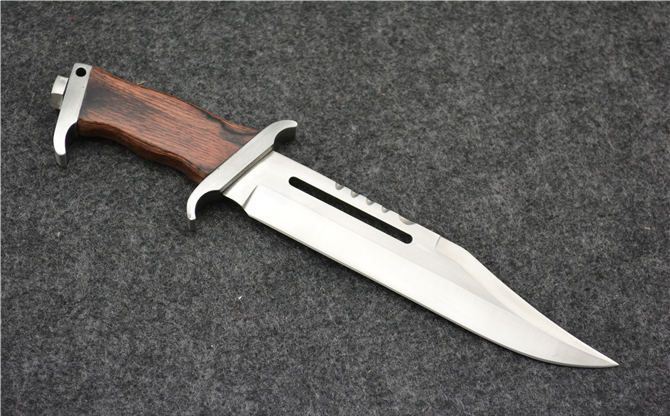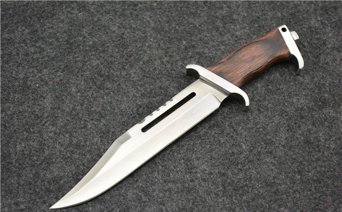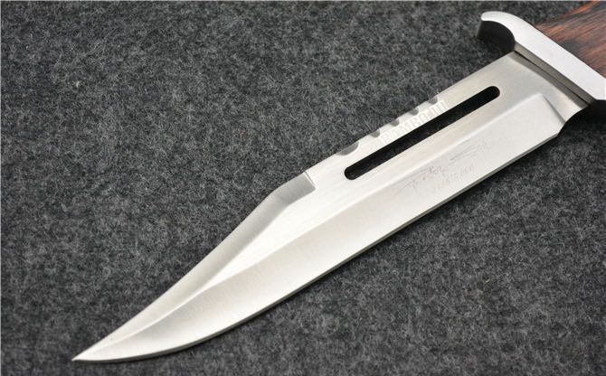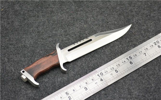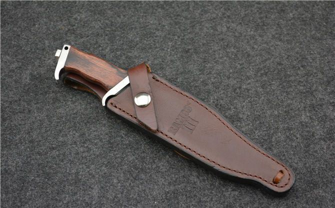 全长:18cm 刀刃:12cm 刃厚:0.3cm 刃宽:2.2CM 柄长:6cm 柄材:进口彩木 净重:70克 表面处理:纯手工砂光 兰博刀以其剽悍的外形,强大的功能,吸引了众多真正玩刀的朋友.刀身造型适合于切割、劈砍、突刺,刀背有大而强悍的背齿.刀锋十分精细和锋利。本款迷你款兰博刀3是好莱坞公司电影公司的旅游纪念款,按比例缩小迷你款,具有很高的收藏与实用价值。