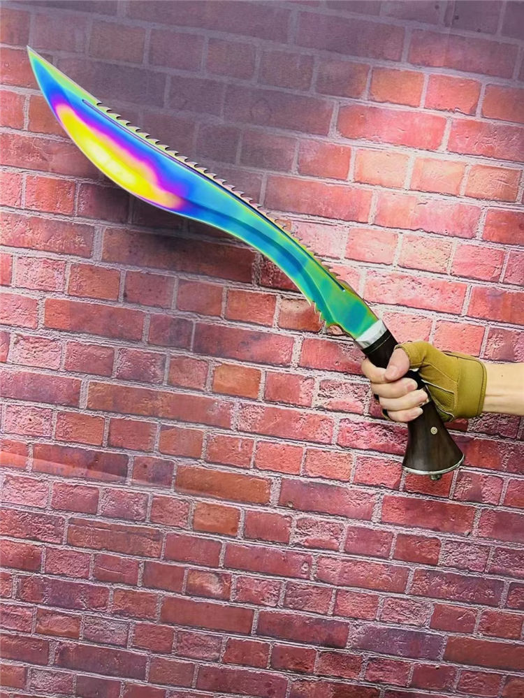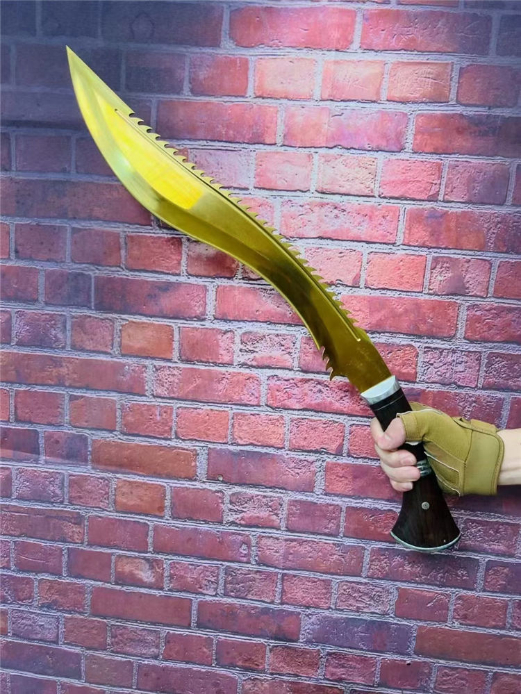 全长:61cM 刃长:44CM 厚度:0.58CM 刃宽:6.3CM 硬度:57C 重量: 1451g 含包装: 刃材9Cr13M0V 柄材:非洲花梨木,全刃,镜光,附真皮刀套,彩盒及说明书