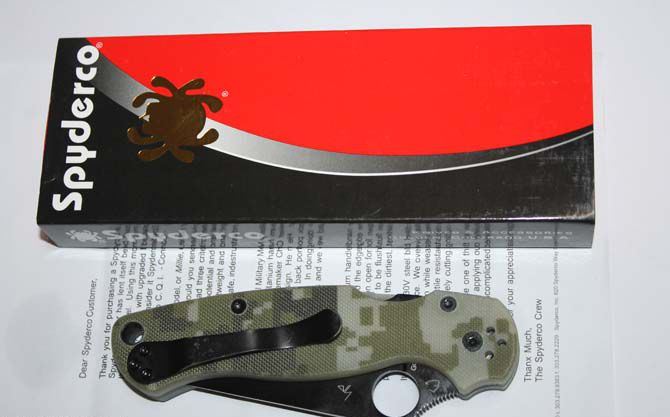 全线切割蜘蛛C81侧背锁折刀迷彩柄(黑刃) 全 长:208mm 刃 长:80mm 柄 长:120mm 刃 宽:320mm 刃 厚:3.8mm 刃 材:8Cr13Mov 重 量:140g(含包装) 硬 度:57-58HRC 表 面:黑钛 柄 材:彩色G10 锁 型:侧背锁 其 他:配彩盒和出世纸