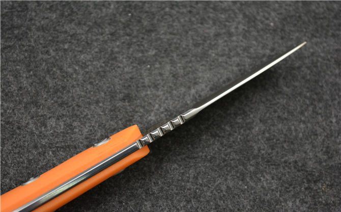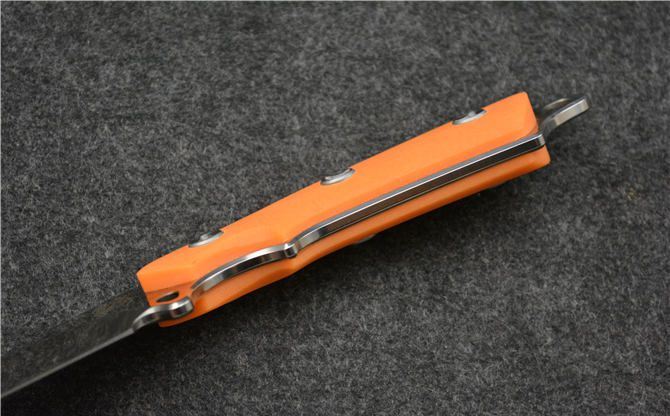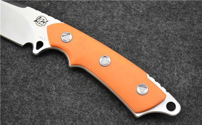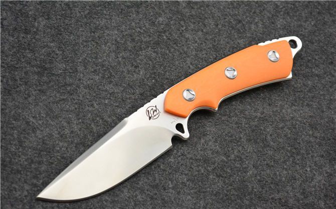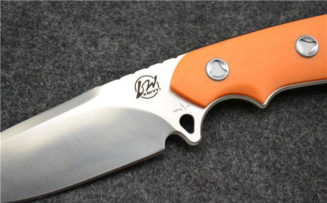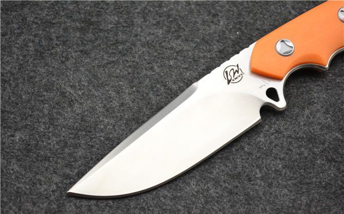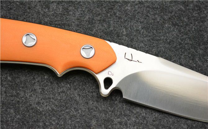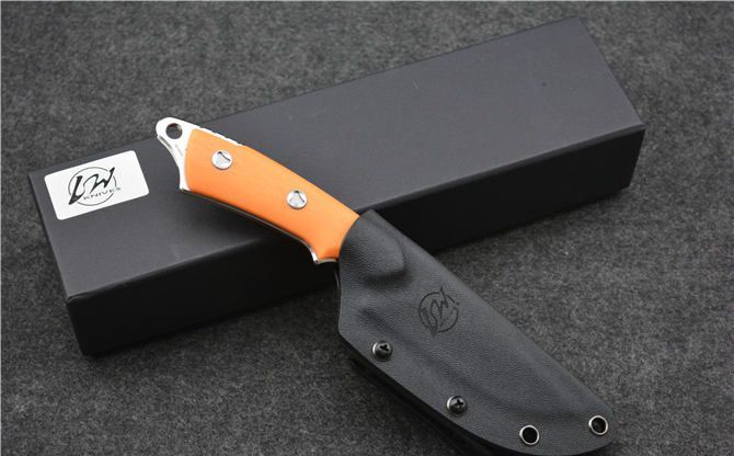 LW利威-微技术小直刀(橙色柄)高度锋利 全长:22CM 材料:特级D2钢一体刀(比市面上普通的D2钢更耐锈,韧性更好) 刀全长与刃长的比例为1比0.5158 刃长:9.8CM 厚度:0.43CM 刀身最宽处3.1CM 硬度高达60HRC(真空油淬热处理) 刀表面:钢本色和石洗色可选(石洗色刀身为黑色,是经过磨洗机磨洗处理) 手柄:进口优质G10材料 刀鞘:进口Kydex刀鞘