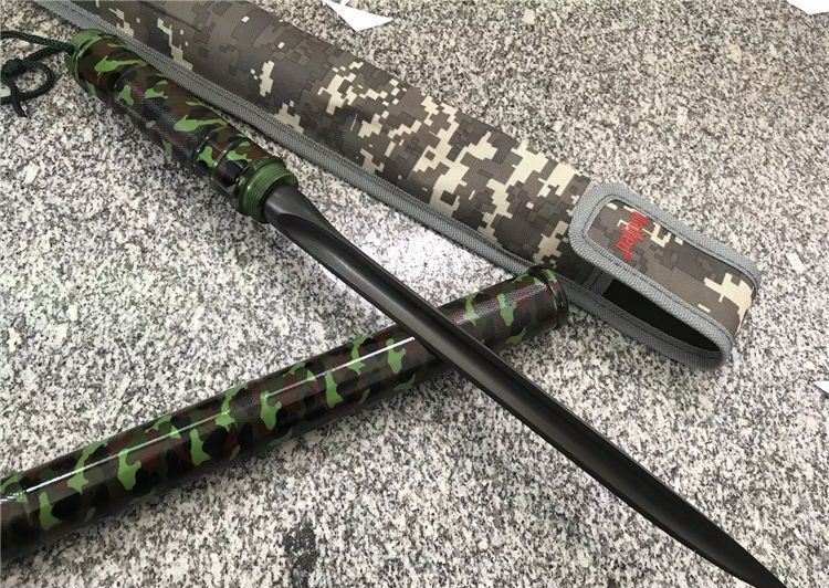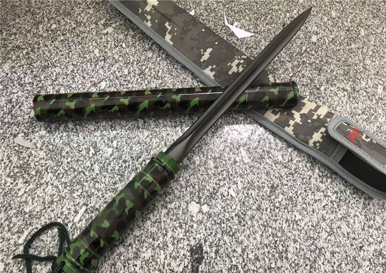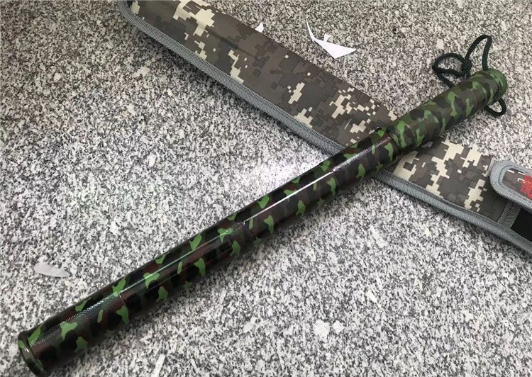 完全反接长度:72.6CM 刃长:24.5CM 完全正合长度:44.2CM 管径:3.2CM 刀径:1.8CM 重量: 930g 硬度: 56HRC 刀材质:440不锈钢 管材: 不锈钢管 柄材: 合金铝 表面:迷彩(不易刮花) 其他:三面血槽 配件;原厂彩盒。高档耐磨加厚尼龙套