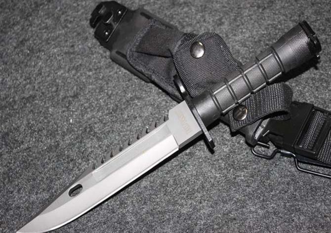 外贸版D80(可拆卸)白刃黑色柄 全 长: 32cm 刃 长: 19.8cm 刃 厚: 5.9mm 刃 材: 4CR13 硬 度: 56HRC 重 量: 刀410g+鞘400g 表 面: 钢本色 柄 材: ABS 刀 鞘: ABS