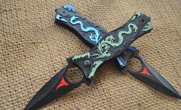 CD纹-群龙争霸半自动折刀 全 长:20.5mm 刃 长:75mm 柄 长:118mm 刃 宽:30mm 刃 厚:3.0mm 刃 材:3Cr13 重 量:152g(含包装) 硬 度:57HRC 表 面:CD纹+氧化黑 柄 材:航空铝 锁 型:半自动线锁 其 他:配彩纸盒 带玻璃撞击器,背夹 (颜色:8个颜色:下单请注明,否则随机发货)